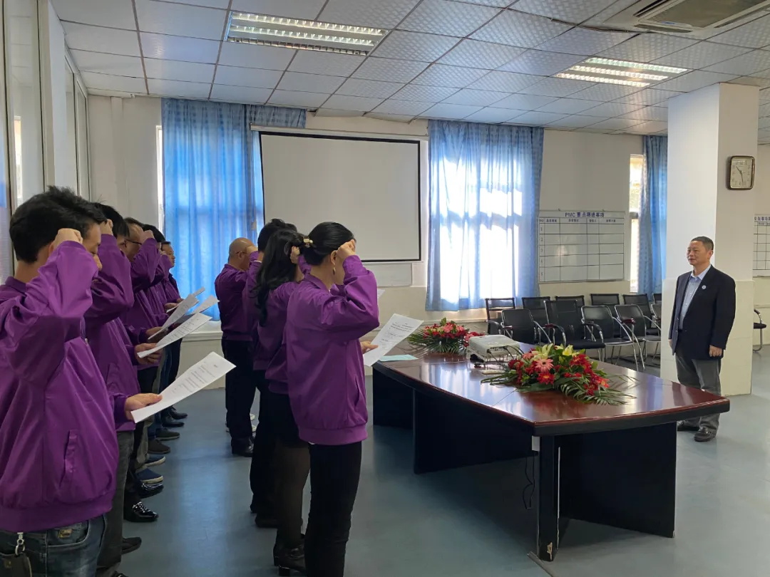 公司厂务向陈董,杨董副总就厂务目标宣誓。